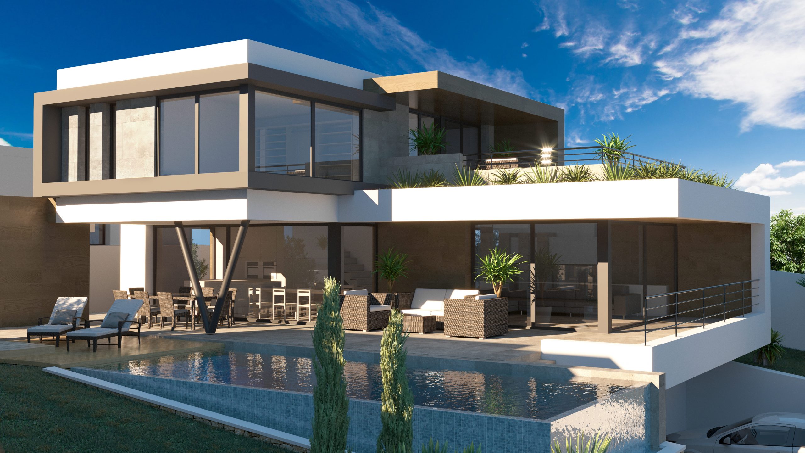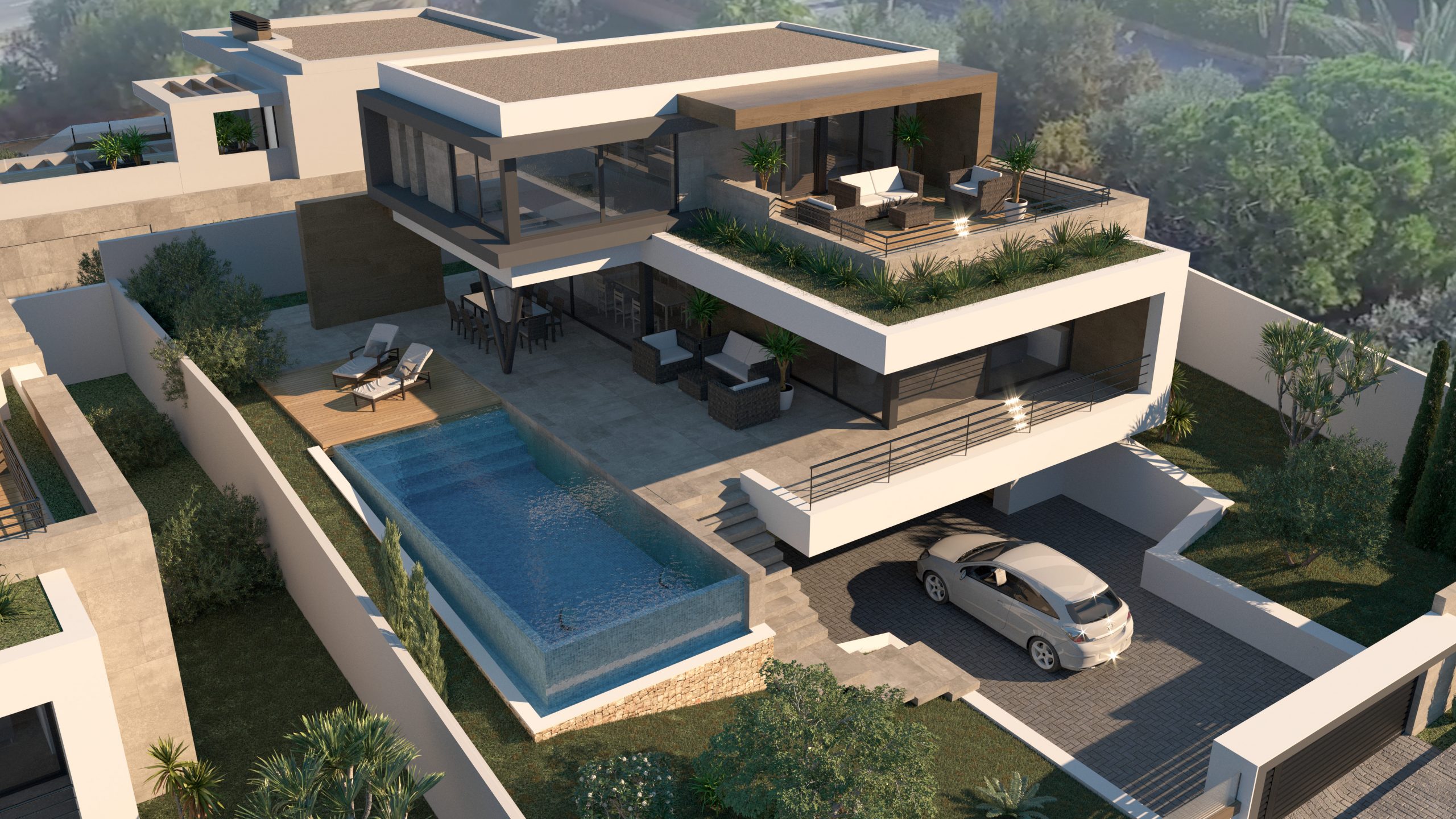 Con un diseño contemporáneo, donde los volúmenes con voladizos generan un juego de formas modernas y orgánicas, creando una fusión perfecta con el entorno interior de la parcela. Este, compuesto por jardines, piscina y una zona de aparcamiento, se integra de manera natural con la vivienda, estableciendo una conexión fluida entre el interior y el exterior. Este planteamiento no solo maximiza la funcionalidad, sino que también permite un aprovechamiento óptimo de la luz natural en todos los rincones del hogar.